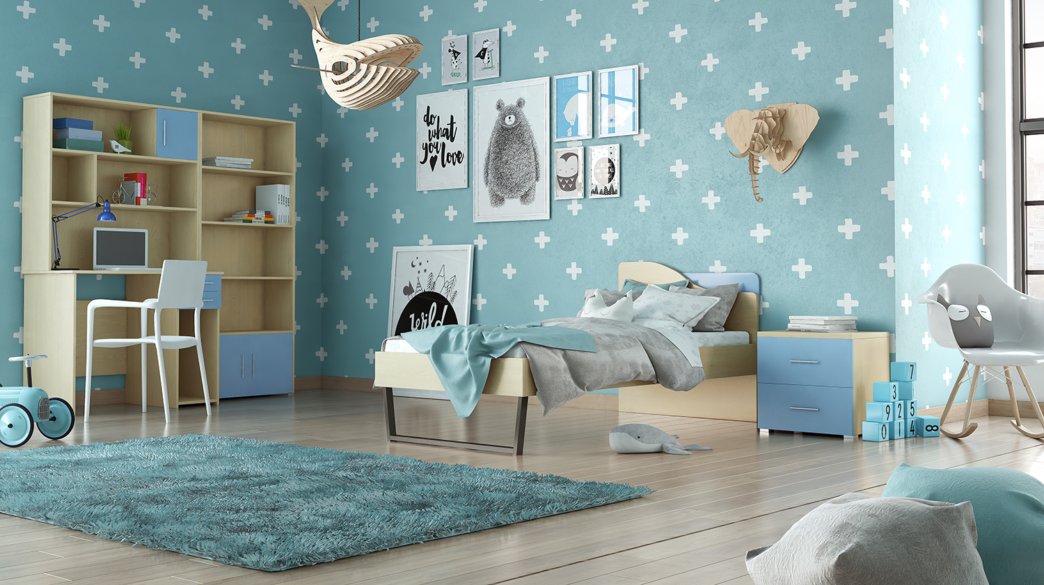 Πλήρες σετ παιδικού δωματίου αποτελούμενο απο κρεβάτι σε διάφορες διαστάσεις, κομοδίνο, γραφείο και βιβλιοθήκη-ραφιέρα.