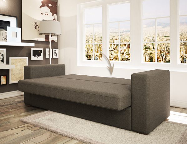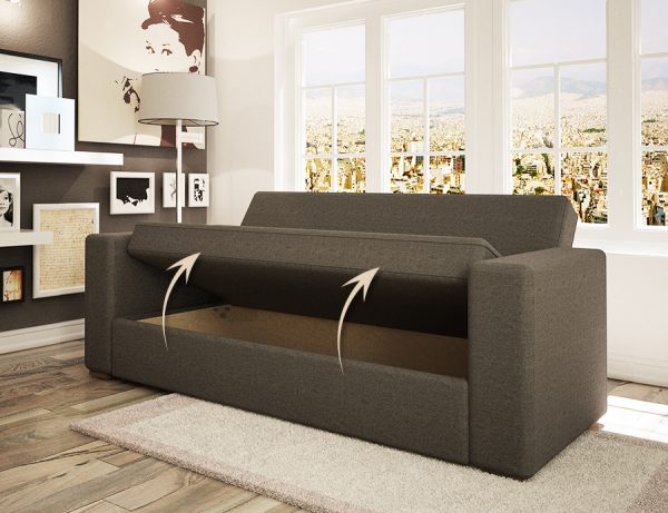 Καναπές – κρεβάτι με αποθηκευτικό χώρο. Κατασκευάζεται σε 3θέσιο(2,10μ.),2θέσιο(1,60μ.),1θέσιο(0,80μ.) με δυνατότητα επιλογής υφάσματος.