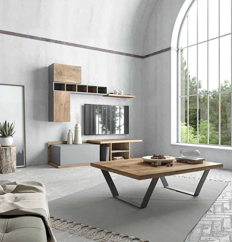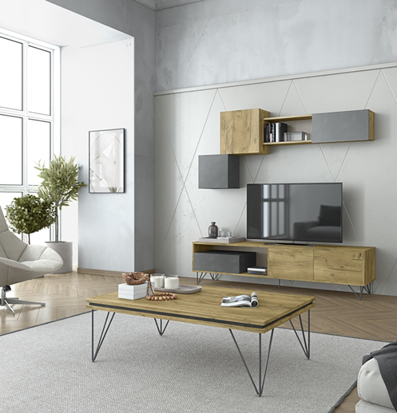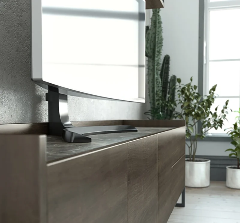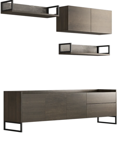 Μοντέρνα σύνθεση τηλεόρασης κατασκευασμένη από 3d μελαμίνη σε σκούρα καρυδί απόχρωση και πινελιά με τεχνοτροπία μαρμάρου στην επιφάνεια της.Διαθέτει μεταλλικά ανθρακί πόδια,βαμένα με ηλεκτροστατική βαφή. Μπορεί να κατασκευαστεί και σε άλλους χρωματικούς συνδυασμούς καθώς σε σε άλλη διάσταση.