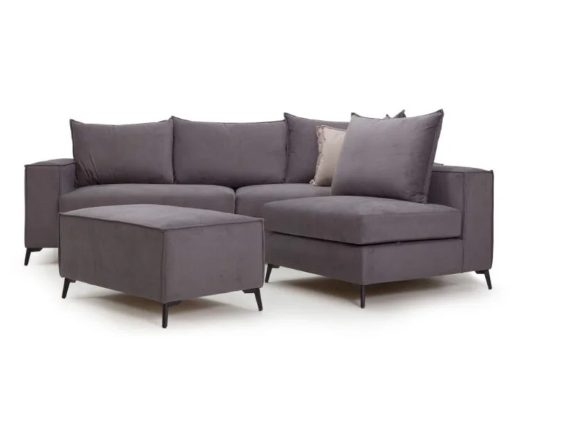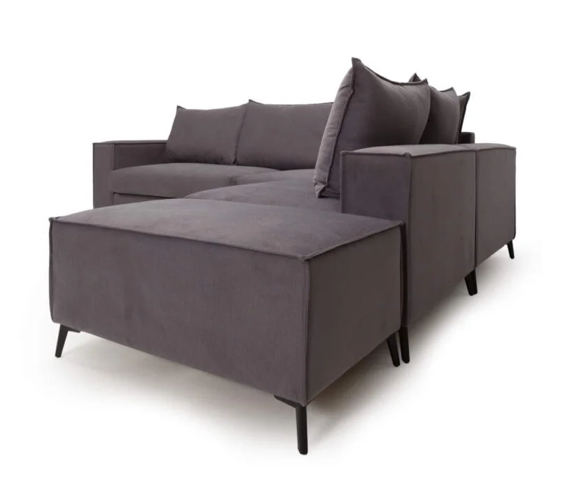 Πολυμορφικός γωνιακός καναπές Siera που αποτελείται από 4 κομμάτια.Μπορεί να τοποθετηθεί σε οποιαδήποτε διάταξη ταιριάζει στον χώρο σας.Ελληνικής κατασκευής.Το ύφασμα του είναι easy clean, για ευκολία στο καθάρισμα, και κατασκευάζεται σε 3 σταθερές αποχρώσεις.Ο σκελετός είναι φτιαγμένος από μοριοσανίδα, ξύλο λεύκας και mdf.Τα πόδια είναι μεταλλικά σε μαύρη απόχρωση.Τα μαξιλάρια πλάτης έχουν γέμισμα από ίνες σιλικόνης, ενώ τα μαξιλάρια καθίσματος αφρώδες υλικό foam 400.Περιλαμβάνει 2 διακοσμητικά μαξιλαράκια.