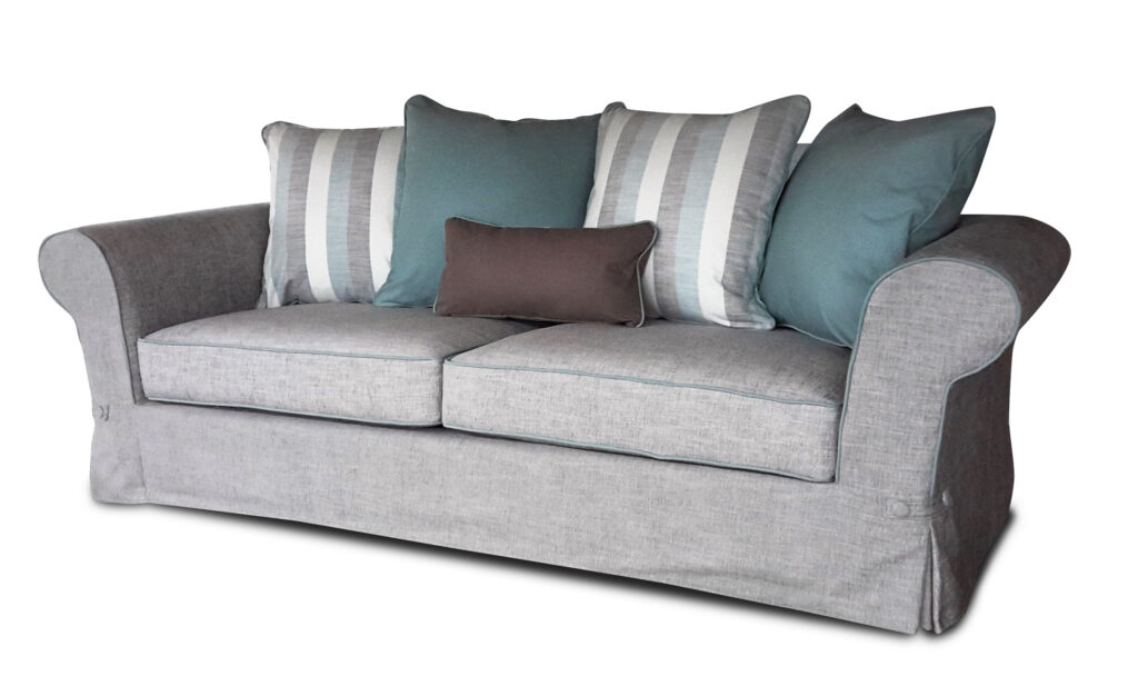 Καναπές Angela 3θέσιο + 2θέσιο. Σκελετός οξιά με μεταλλικό μαύρο πόδι.Λεπτομέρεια στο μπράτσο και στο μαξιλάρι της πλάτης.Κατασκευάζεται και σε γωνία επίσης μπορεί να κατασκευαστεί σε όλα τα χρώματα και τις διαστάσεις.
